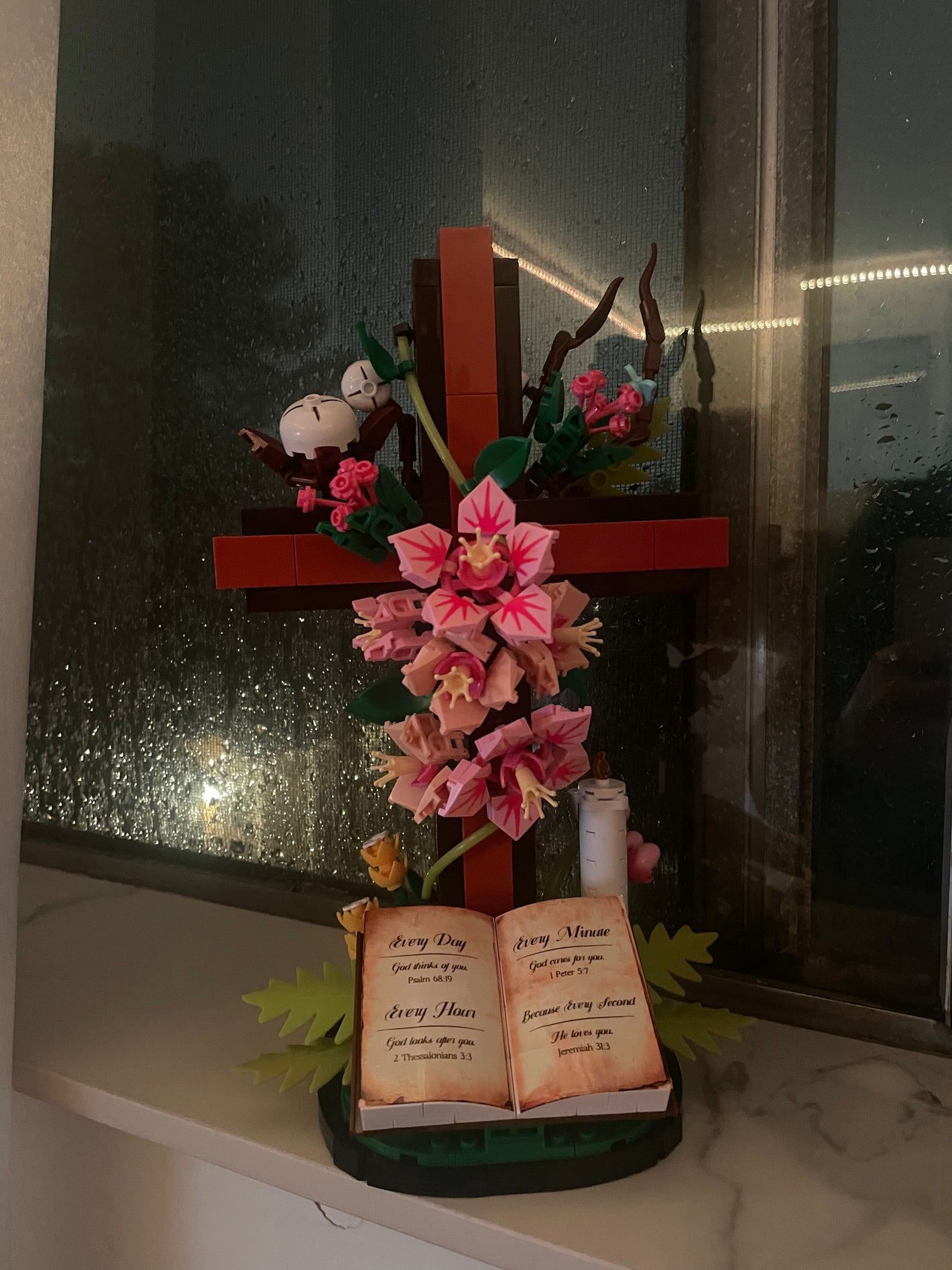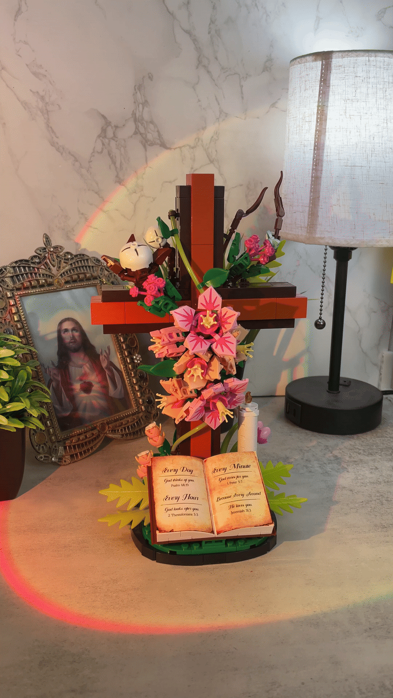 With vibrant flowers, a radiant cross, and an open Bible base, this set becomes a stunning centerpiece for any home, prayer room, or church office.